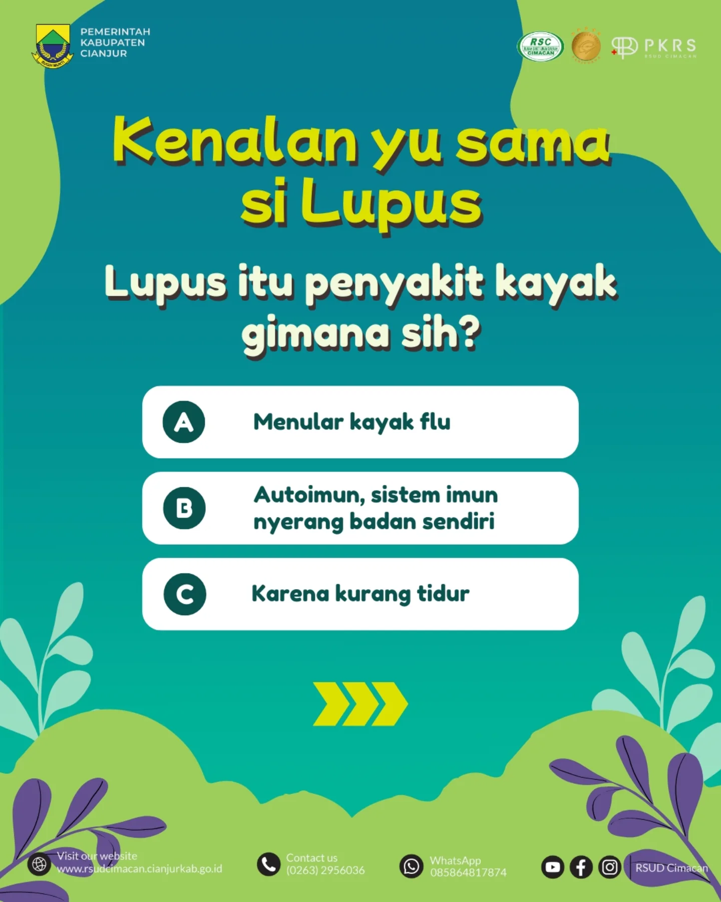 Kamu tahu gak sih, kalau Lupus itu bisa menyerang siapa saja, dan gejalanya sering nggak kelihatan? 😲 Yuk uji pengetah...