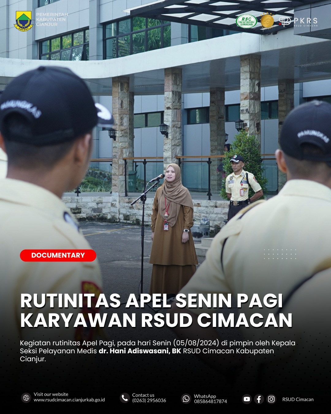 Kegiatan rutinitas Apel Senin pagi bersama seluruh karyawan RSUD Cimacan Senin, 05 Agustus 2024
