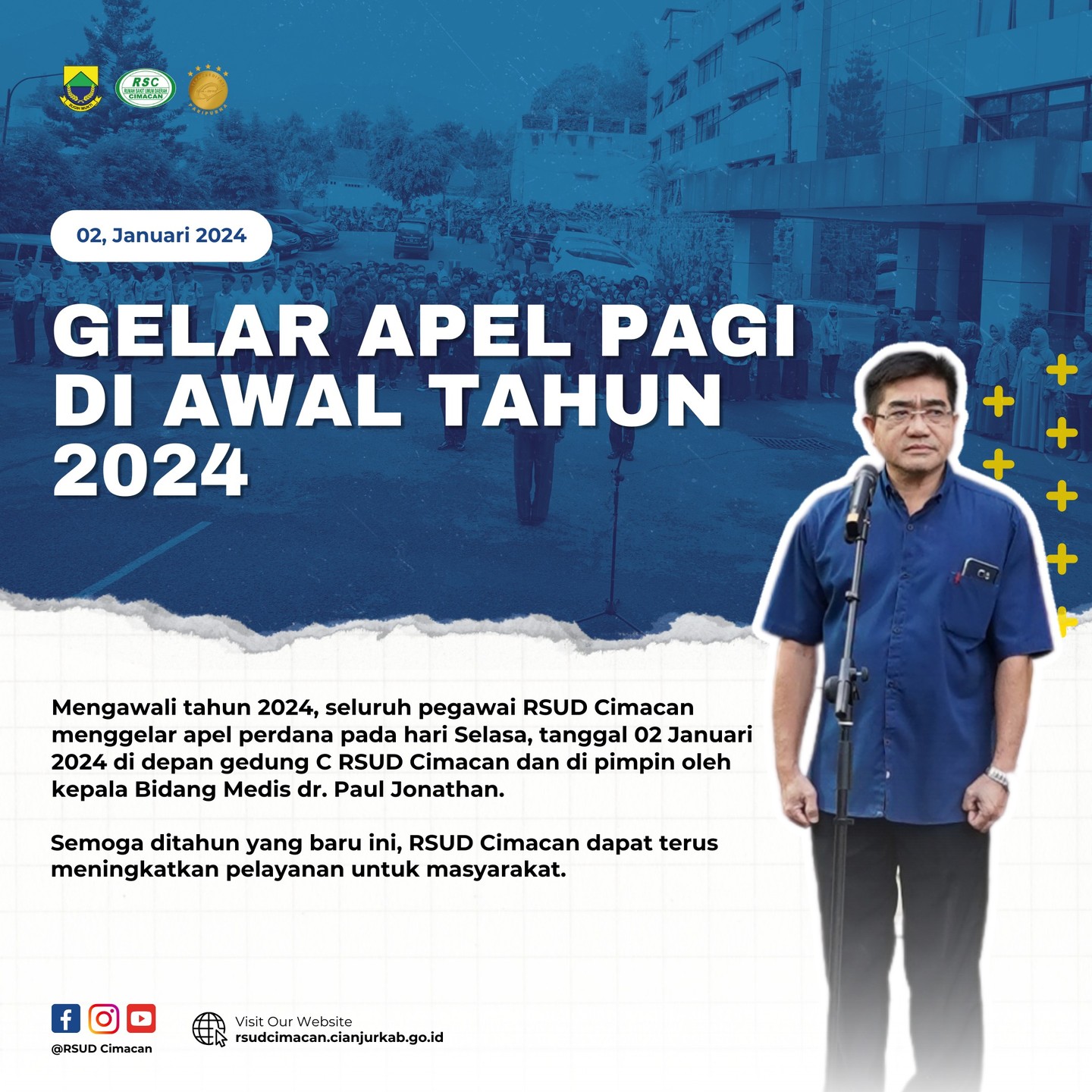 Mengawali awal Tahun 2024, RSUD Cimacan Kabupaten Cianjur melaksanakan Apel Pagi yang dipimpin oleh Kepala Bidang Bidang...