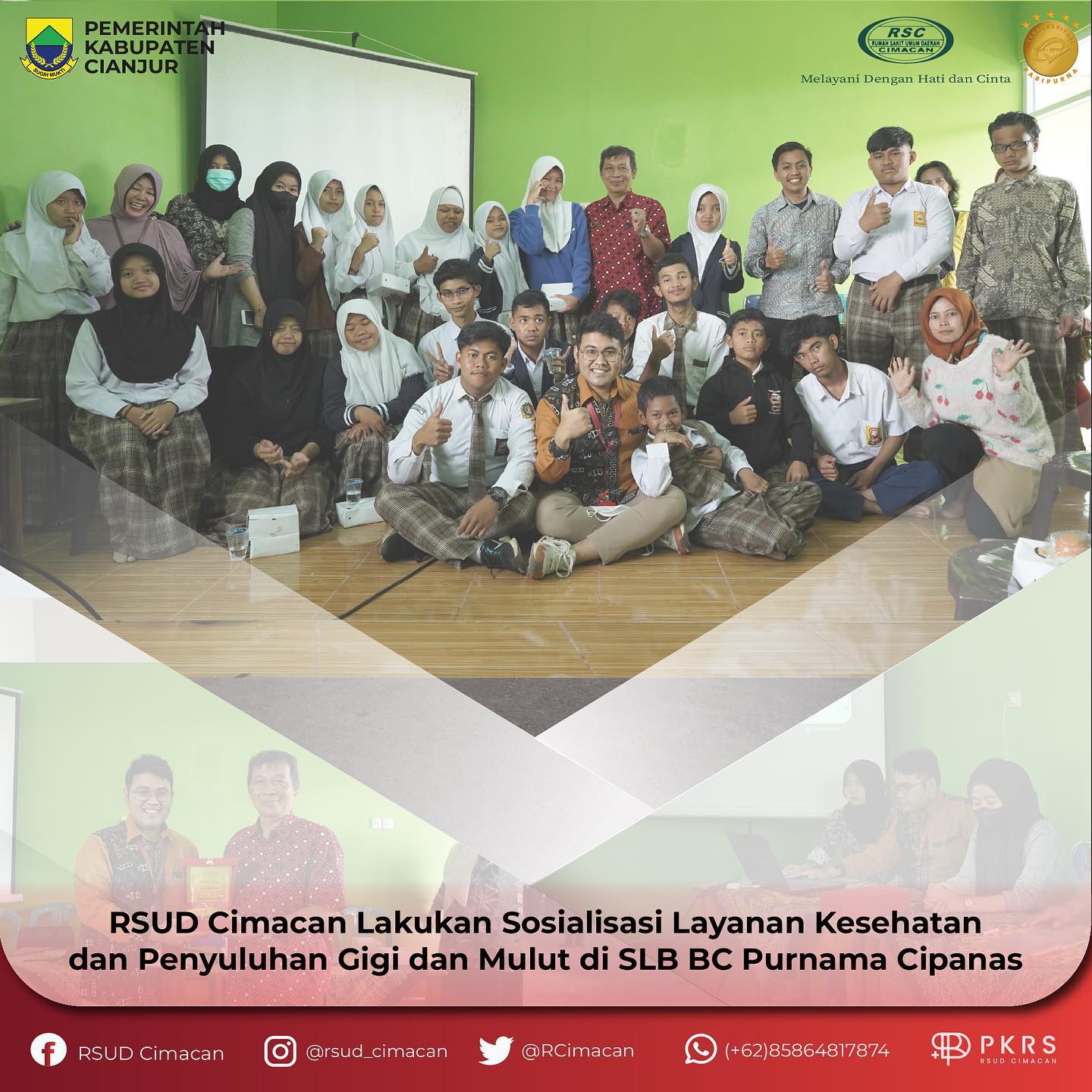 Sosialisasi terkait layanan kesehatan dan penyuluhan kesehatan gigi serta mulut dilaksanakan oleh tim PKRS Cimacan pada...